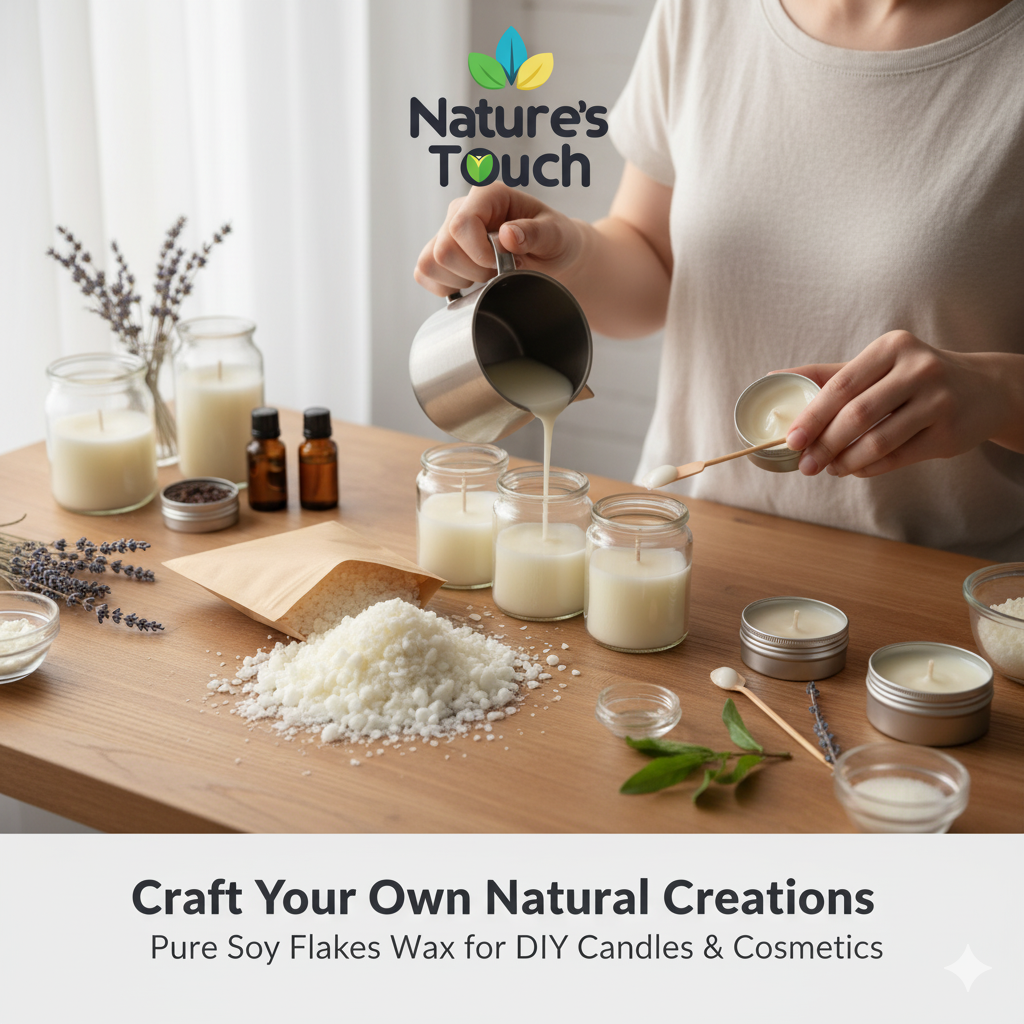 Premium soy wax made from flaked soybeans, perfect for professional candle-making and cosmetic formulations.